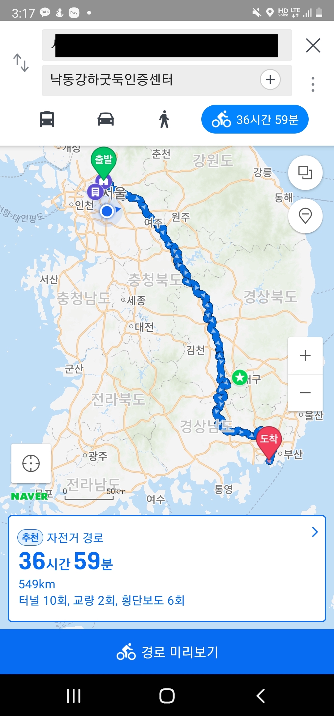 본격 셋째날 국토종주 시작